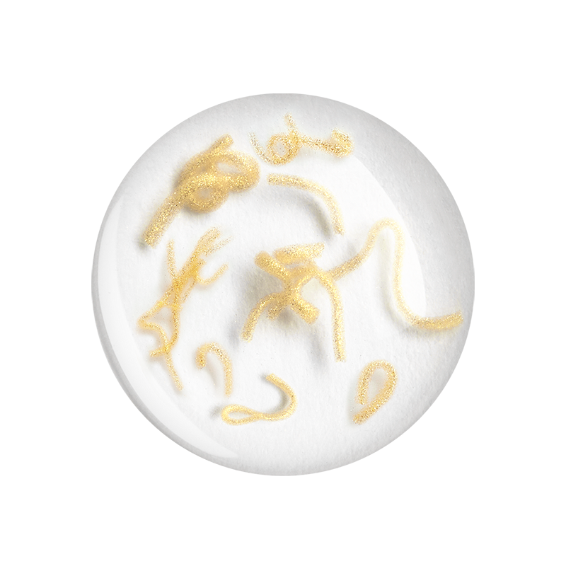 Those are patented Korean silk peptide threads infused with gold. When you apply the ampoule, these ultra-fine threads dissolve into your skin and create a temporary lifting network—similar to the concept behind $3,000 thread lift procedures.