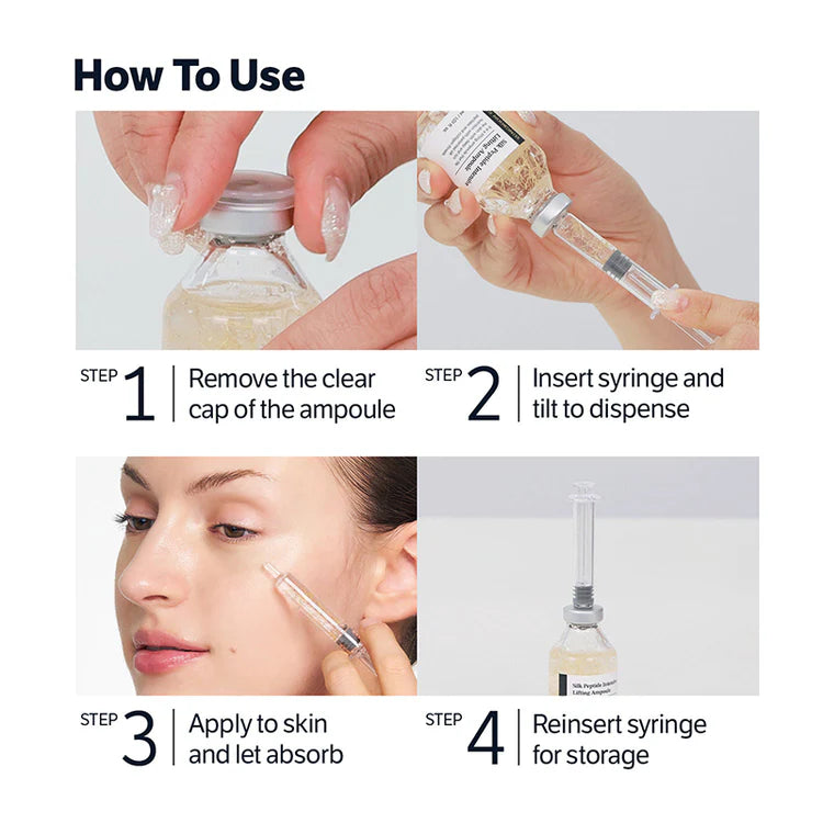 This ampoule delivers high-purity silk collagen peptides small enough to absorb deep into the skin where firmness, bounce, and smooth texture are built.