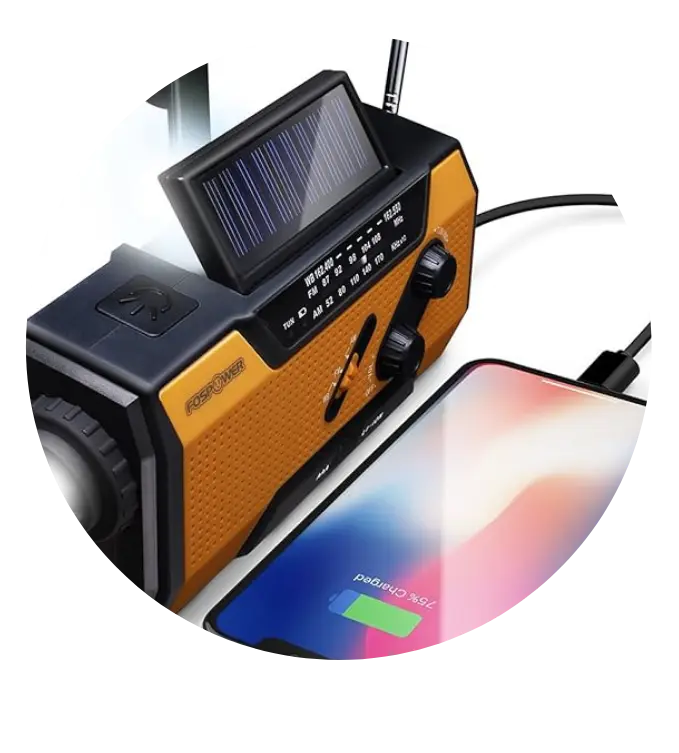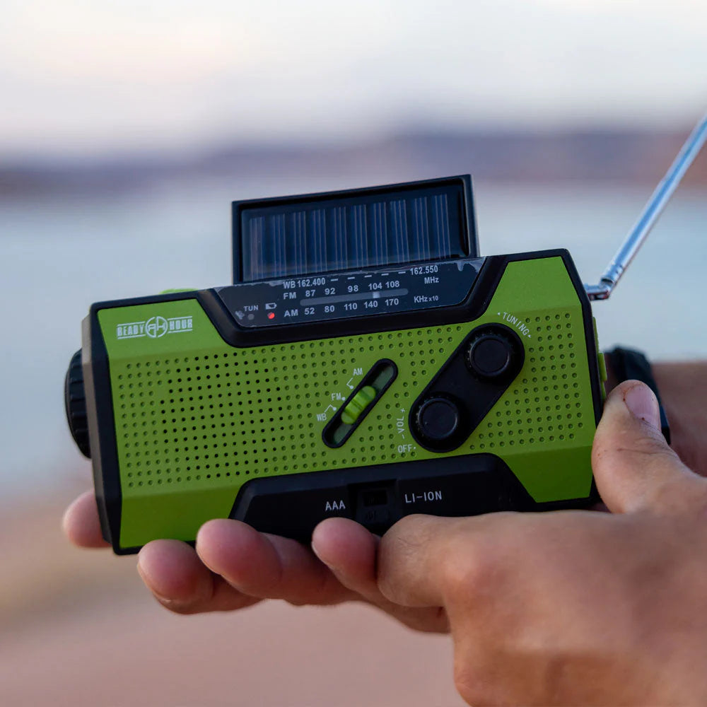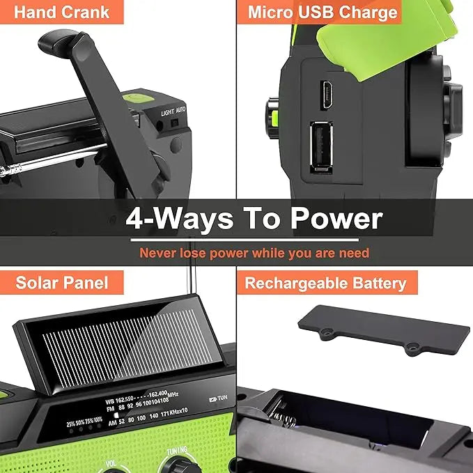Introducing the Emergency Crank Radio, your essential companionfor power outages, outdoor adventures, and unexpected situations. More than just a radio, it's a lifeline offering vital information, light, and even a way to charge your phone –all powered by multiple reliable sources.