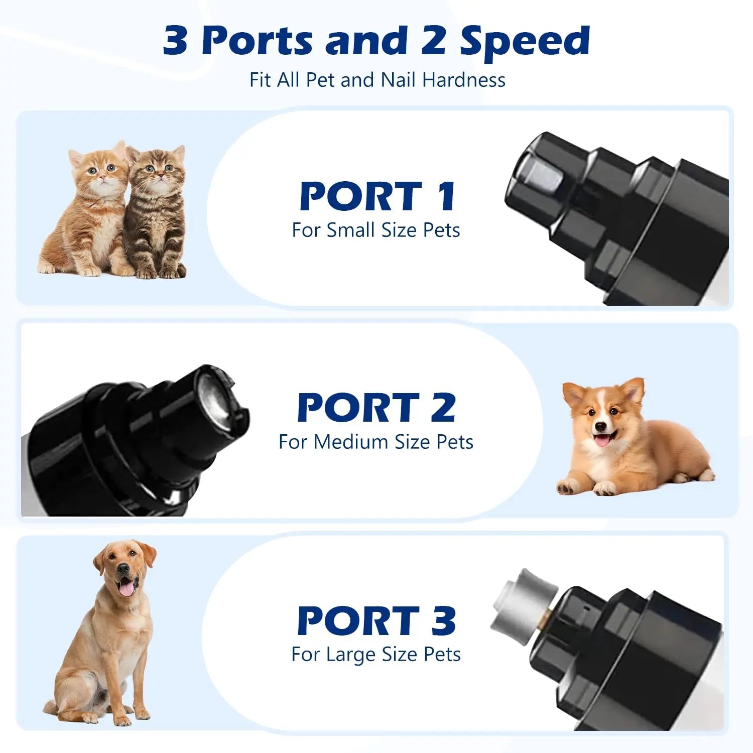 Select the port that matches the size of your pet’s nails: