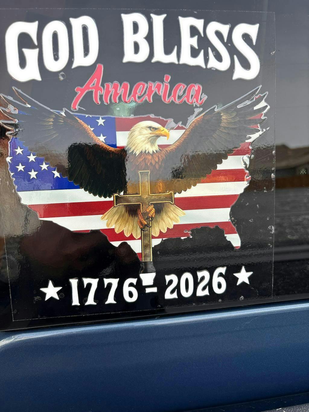 Patriotic 250th Anniversary God Bless America Eagle 1776–2026 Car Window Decal